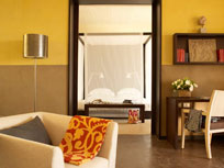 Deluxe Room (40 кв. м.) – номера с террасой состоят из спальни с кроватью king-size и зоной отдыха, гардеробной, ванной комнаты с ванной и отдельной душевой кабины. Вид на море. Размещение – 2 взрослых или 1 взрослый + 1 ребенок.